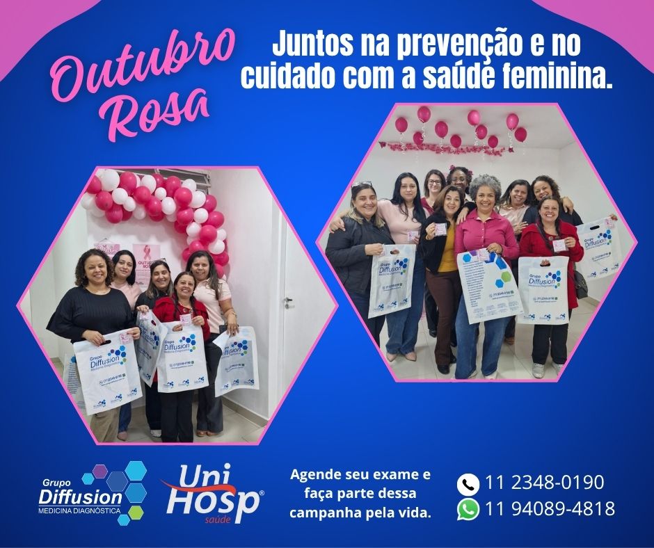 O Outubro Rosa é um movimento dedicado à conscientização sobre a importância da prevenção e do diagnóstico precoce do câncer de mama. Neste mês especial, reforçamos o compromisso com a saúde da mulher através de uma parceria entre o Grupo Diffusion e a UniHosp Saúde.